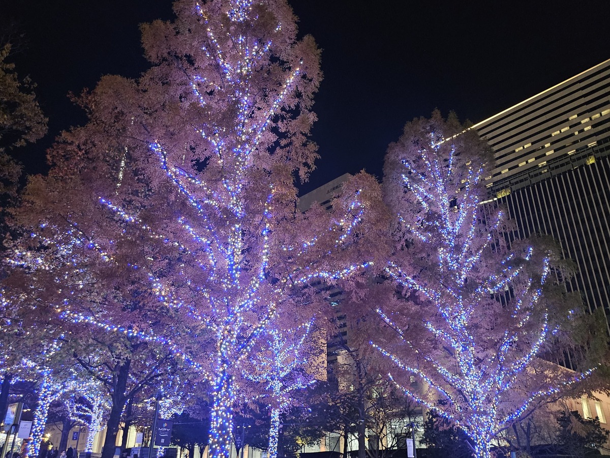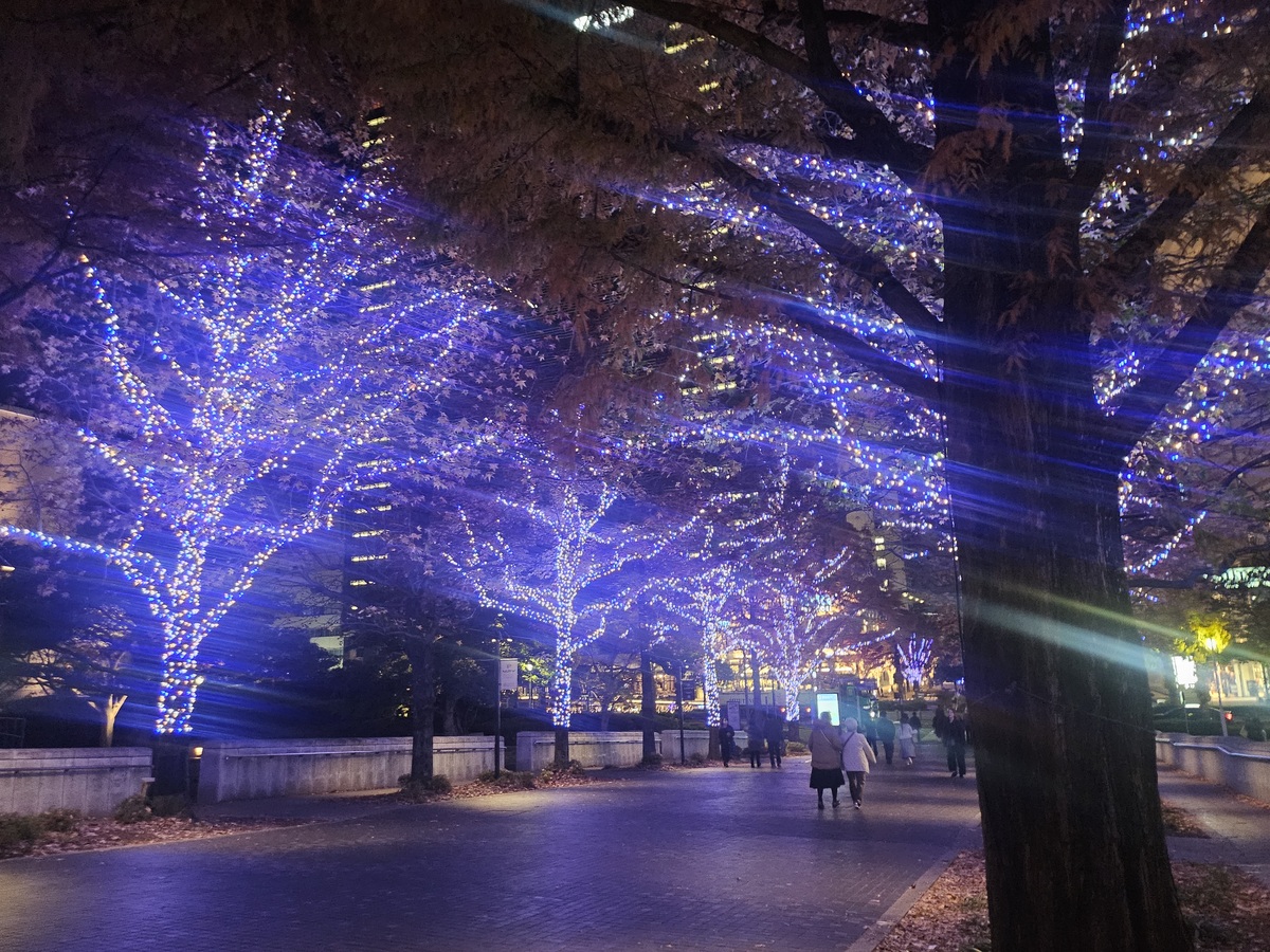 入口からすでに青いイルミネーションが輝いていて、歩いているだけでテンションが上がる。そして何より入場無料。ありがてぇ。