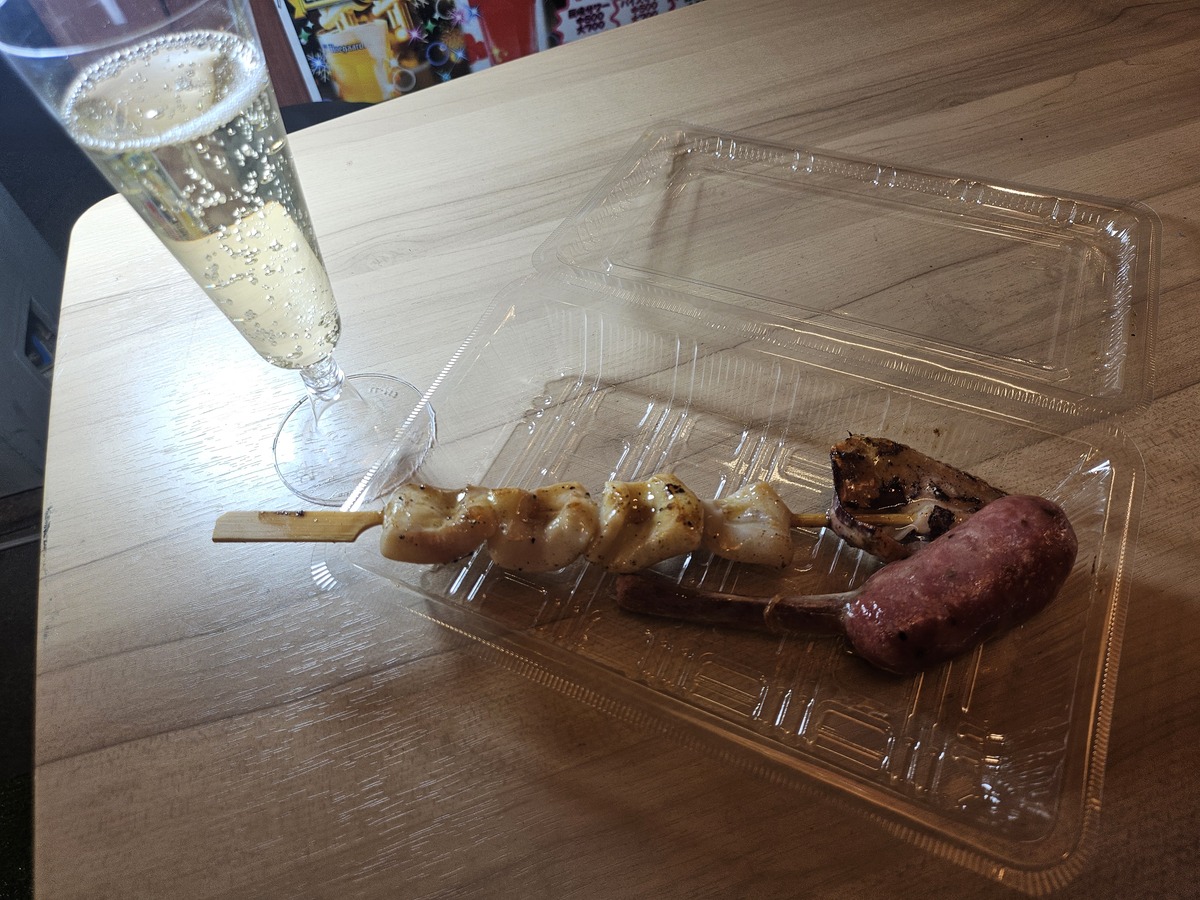 シャンパンは甘口で飲みやすく、案外イカともケンカしなかった。