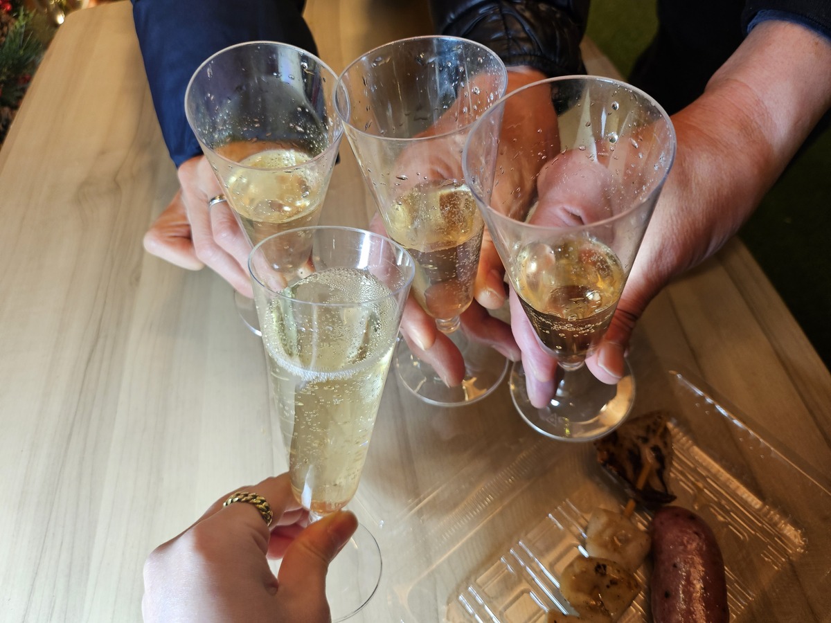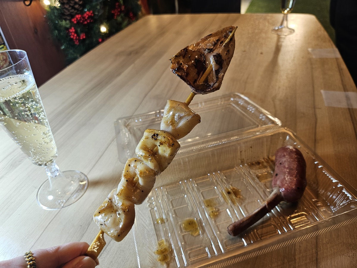 お酒は何が合うのか……と迷っていると、店の仲間らしきグループが「シャンパンがおすすめ‼︎」と熱くすすめてきた。