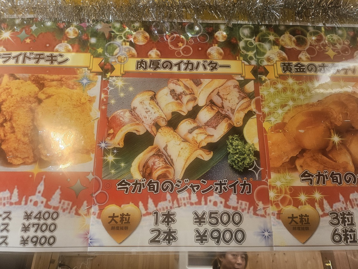お話を伺うと、愉快な店主の水澤さん(左)とワインソムリエの佐々布さん(右)が共同で出店しているという。おすすめは「肉厚のイカバター(500円)」とのことで、まずはそれを注文。
