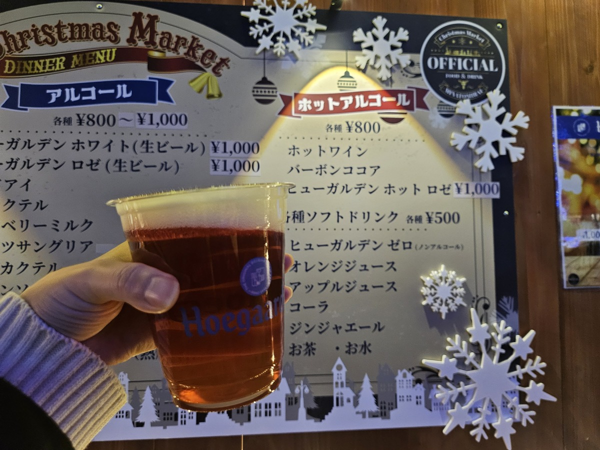 せっかくなので最後は「ヒューガルデンロゼ ホット(1000円)」を注文。ホットビールは何気に初体験だったが、体がじんわり温まるし、甘さもあって冬にぴったり。