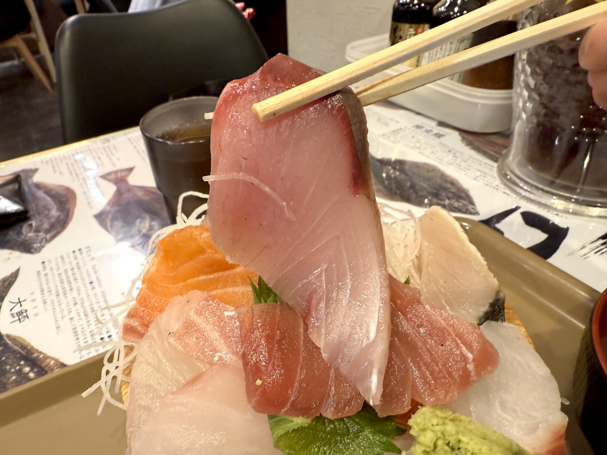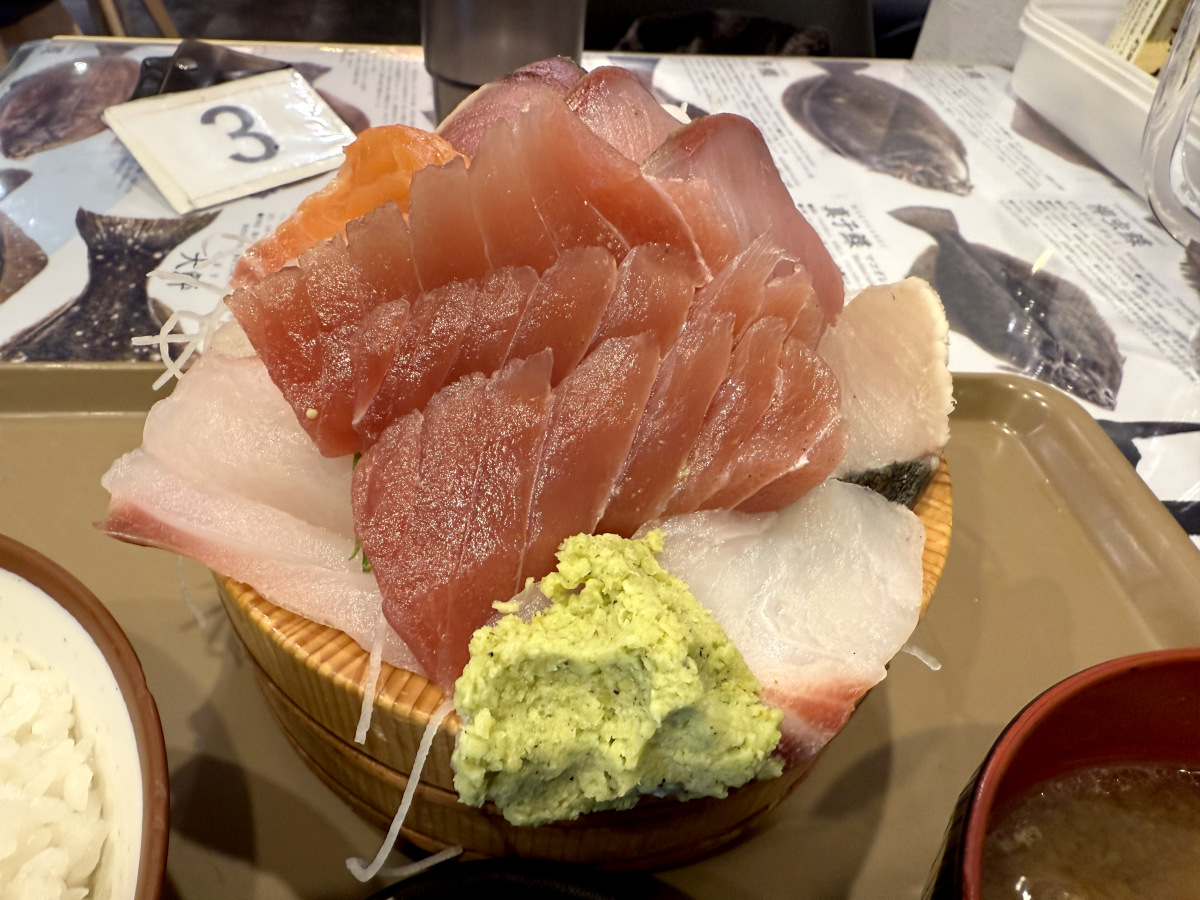 この日の「鷹丸定食」もまぐろを中心に、タイ・ブリ・サワラ・サーモン……などなど、大ぶりな刺身がテンコ盛り! どれも間違いのないウマさで「やっぱり新宿で刺身はタカマルだな!」と思わずにいられなかった。