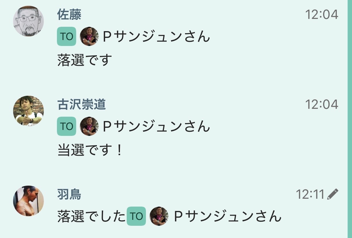 結果は11名中6名が当選、つまり当選確率は「54.5%」でした!