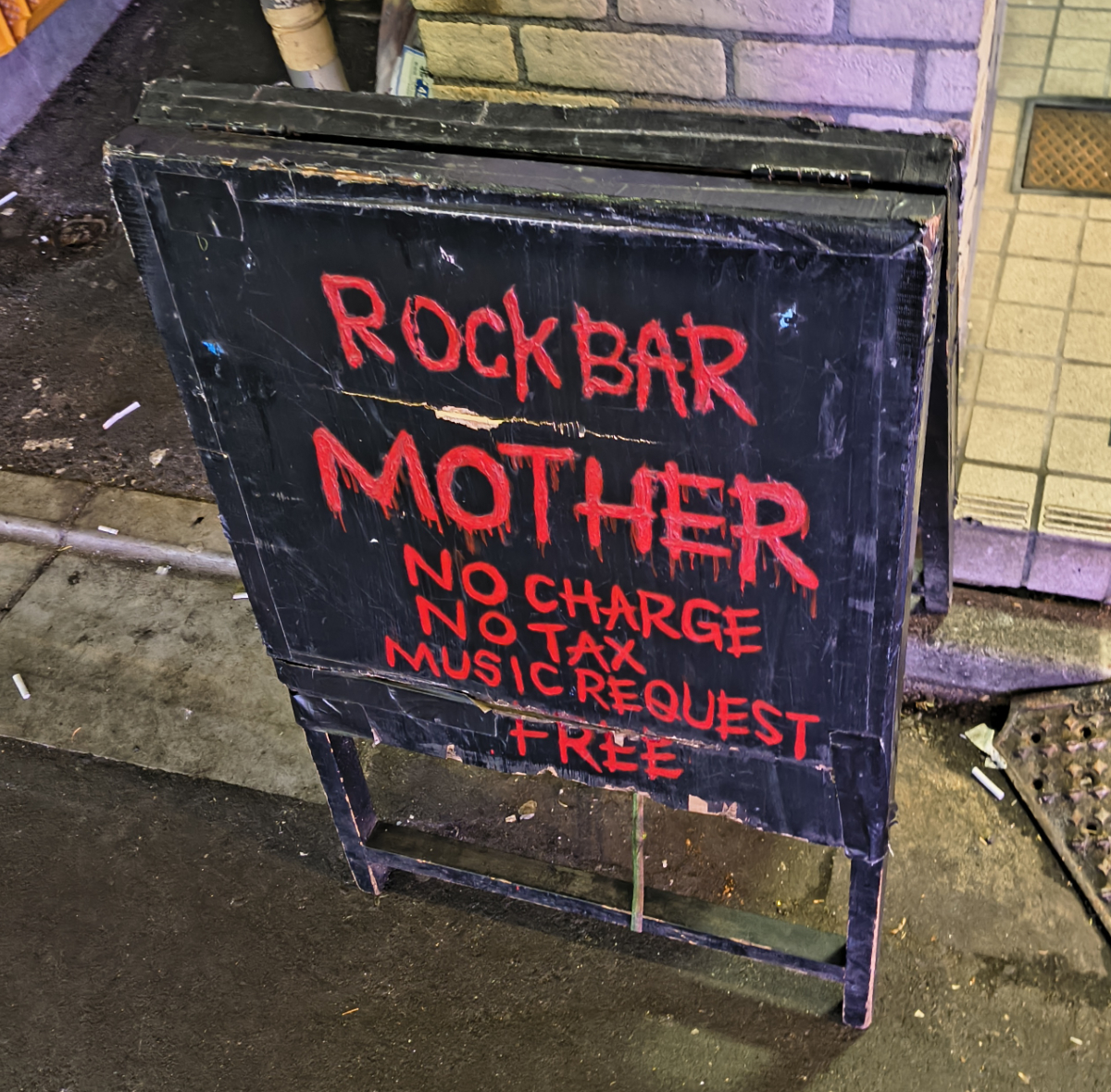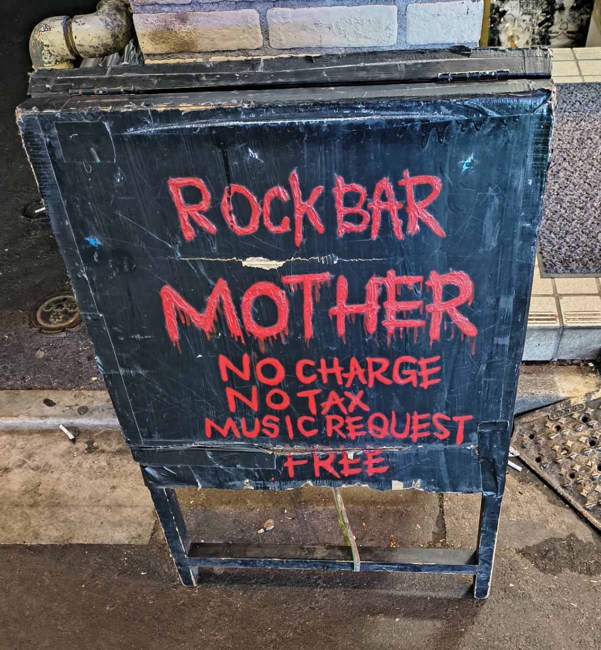 まず1軒目はここ、「Rock Bar Mother」だ。ここは私が20代の頃から営業している、老舗のミュージックバーである。記憶が正しければ、初めて訪ねたのは24歳くらいのことだったと思う。そうすると、四半世紀以上営業していると思うのだが、詳細はわからない。