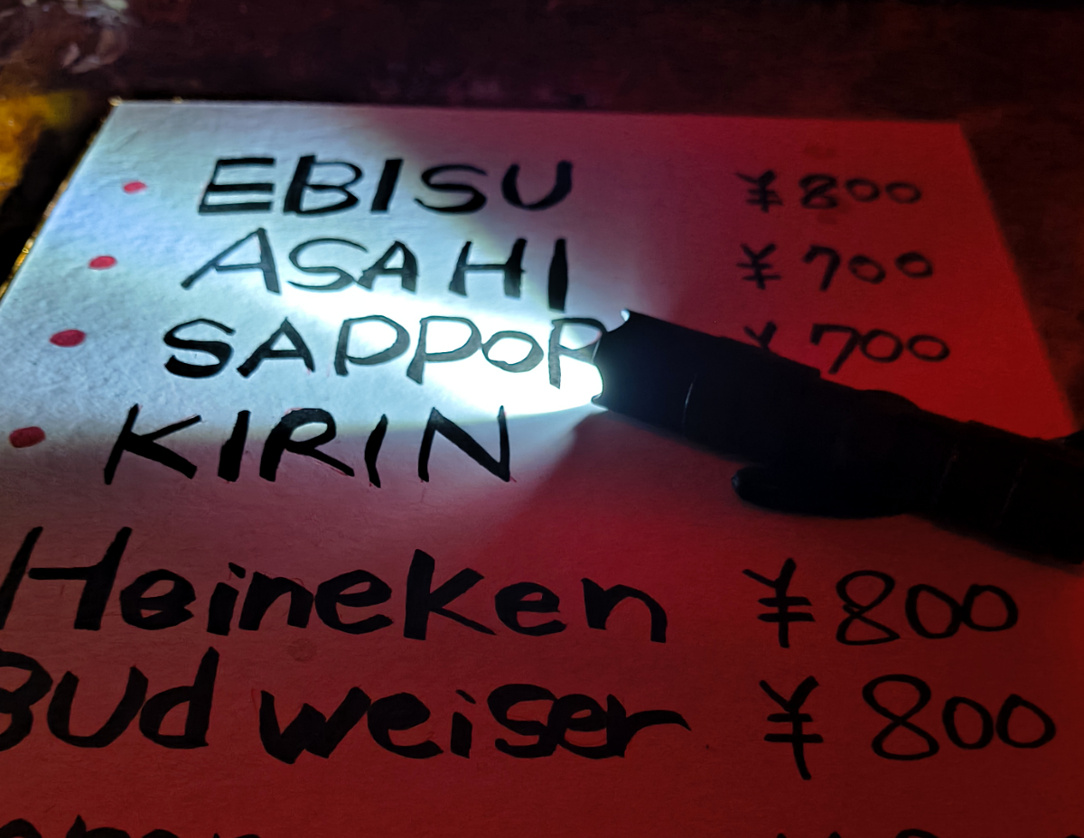 店内は照明を目いっぱい暗くしている。おまけに音楽は爆音で会話もままならない。その中で、手渡される懐中電灯を頼りに、オーダーしたりリクエストしたりする。