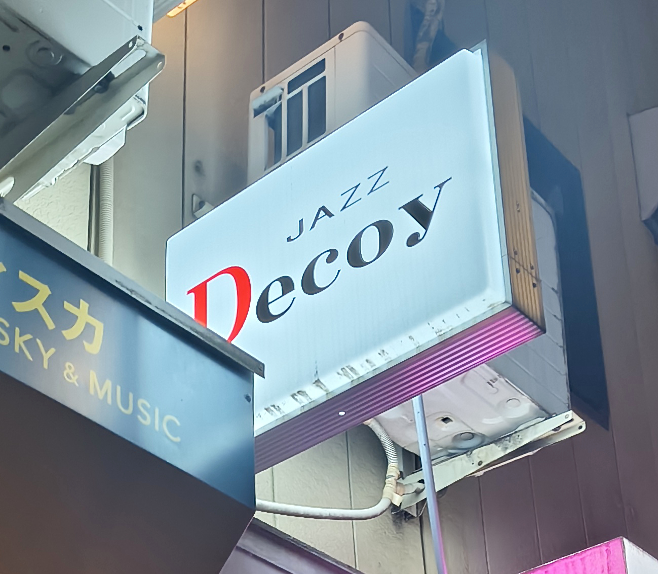界隈を1~2周回っても、それと思しき店が見つからなかった。が、ふと見上げると「JAZZ Decoy」とある。和訳すると「囮(おとり)」か、いいね。その囮にかかってみよう。
