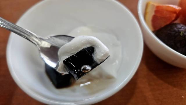 生クリームを好きなだけ盛れる、ほろ苦風味のコーヒーゼリーが食後のデザートにピッタリなのでぜひとも味わっていただきたい。