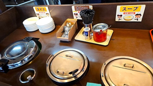 で冒頭でも少し触れたが、これらの商品を注文すれば追加料金無しでサラダバーセット(カレー&スープ付き)を楽しむことができちゃうのだ。このセットが豪華で最高なんだよな。