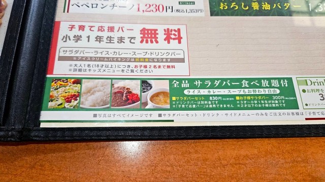しかも、こちらのパスタもステーキ同様に追加料金無しでサラダバーセットが付いてくるとのこと。