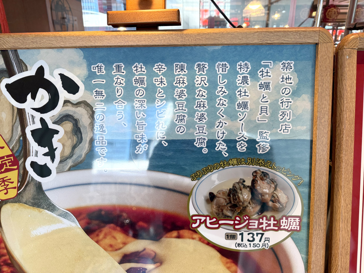 なお、公式サイトによると『牡蠣陳麻婆豆腐 牡蠣ソース仕立て』は2026年2月28日(土)までの発売とのこと。もしかしたら麻婆豆腐史に残る革命的なメニューかもしれないので、気になる方はぜひどうぞ。