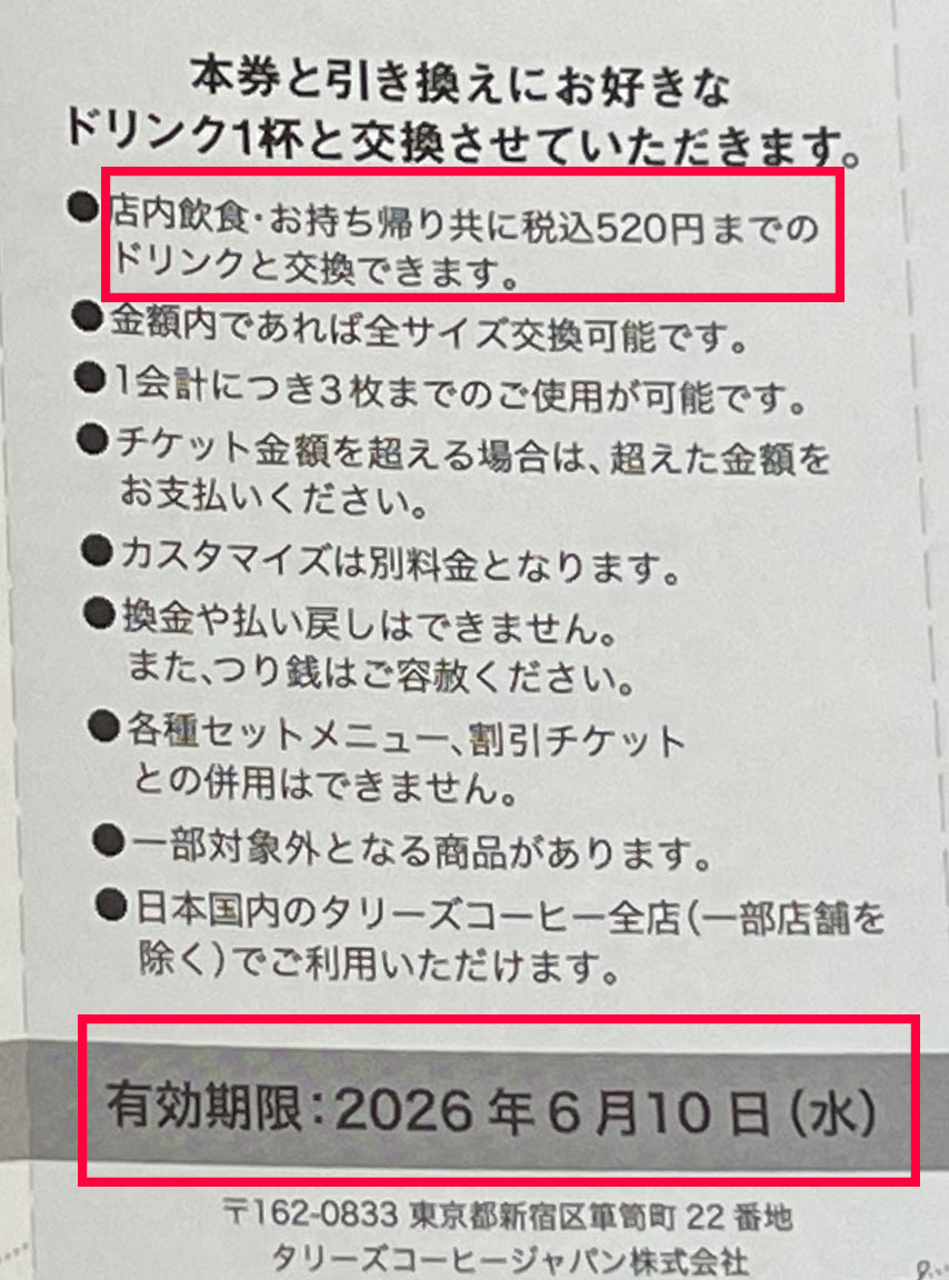それどころか、2025年の福袋では1枚につき店内飲食517円(持ち帰り507円まで)のドリンクと交換できたのに対して、2026年版は店内飲食・持ち帰りともに520円までOKになっている。