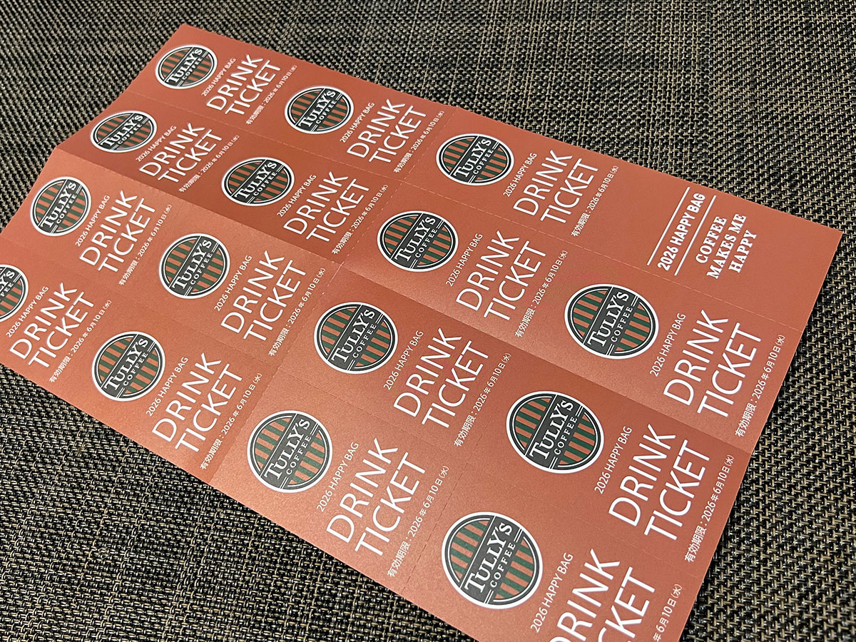 そのためだろうか。タリーズの1万円福袋は、毎年パワープレイで購入者を満足させるような内容になっている。具体的に言うと、ドリンクチケットが大量に入っているのだ。