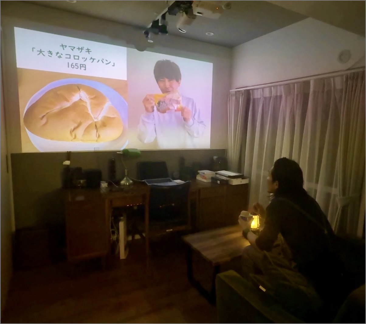 そして壁に投影したプロジェクターでYouTubeなんか見ちゃったりして、サーティーワンをパクつく……。