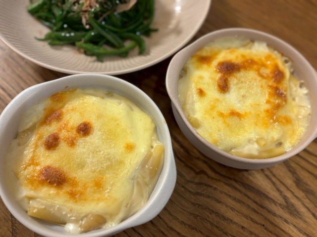 サイズ感が絶妙で、一人分のグラタンやドリアにちょうどいい。見た目もかわいく、料理がおいしそうに見える。(いや、実際においしいのだがな)