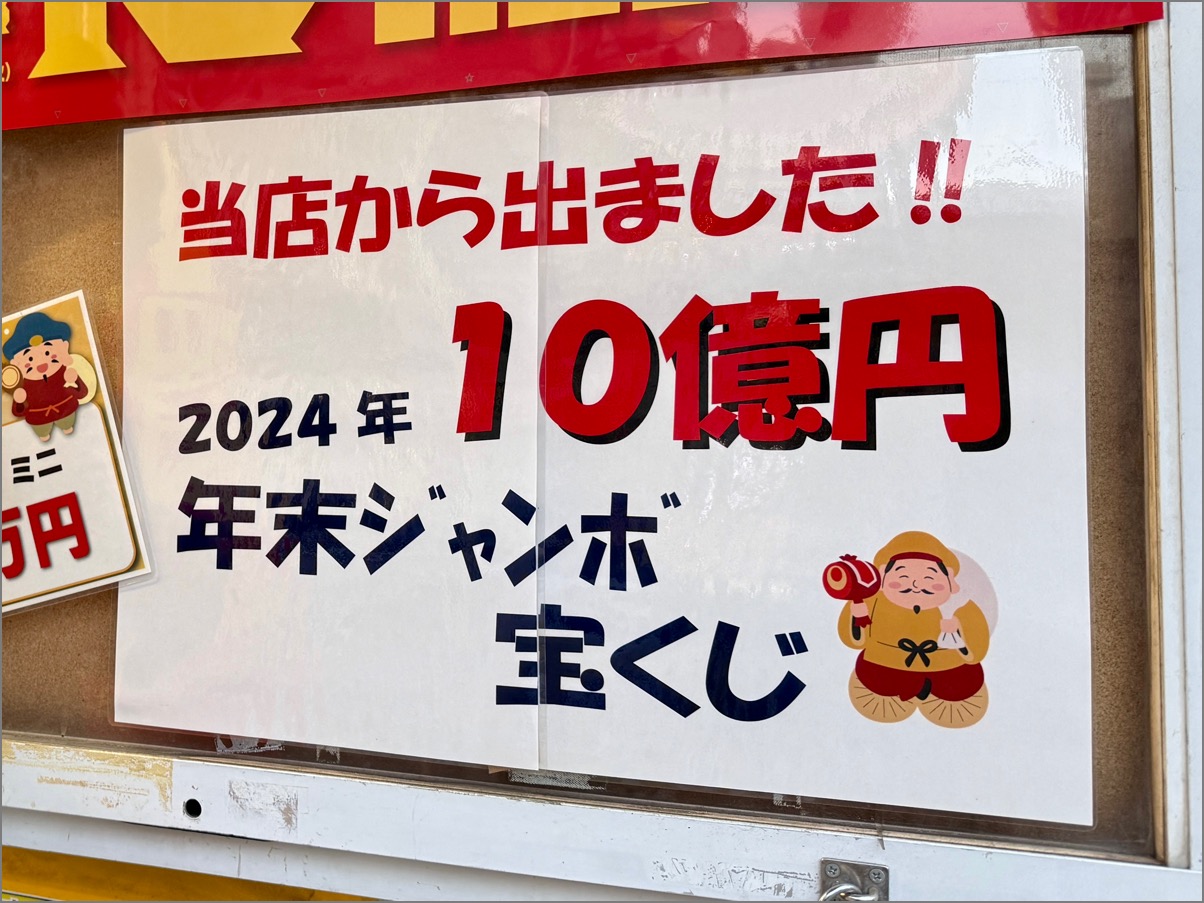 昨年の年末ジャンボ宝くじの10億円(前後賞あり!)は、なんとこの店舗から出たのだとか!