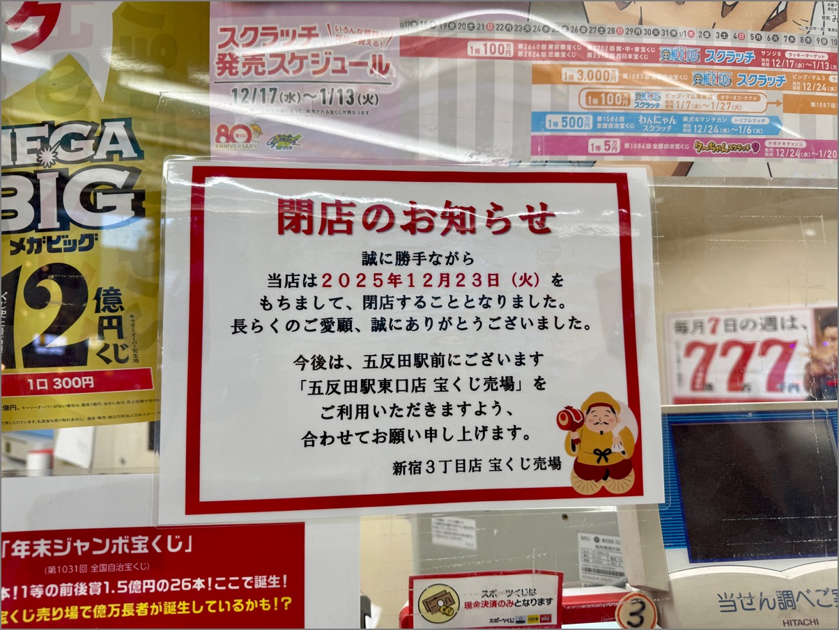 今回の年末ジャンボ宝くじの発売期間は12月23日(火) までなので、2025年末ジャンボと共に、この店は長い歴史に幕を閉じるのである。