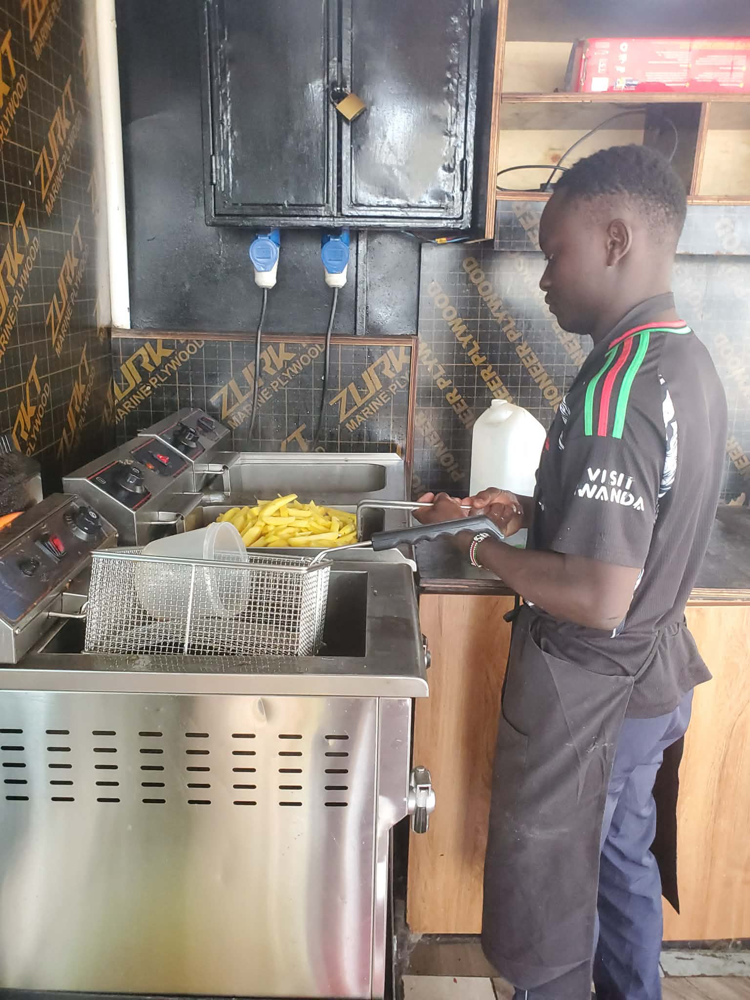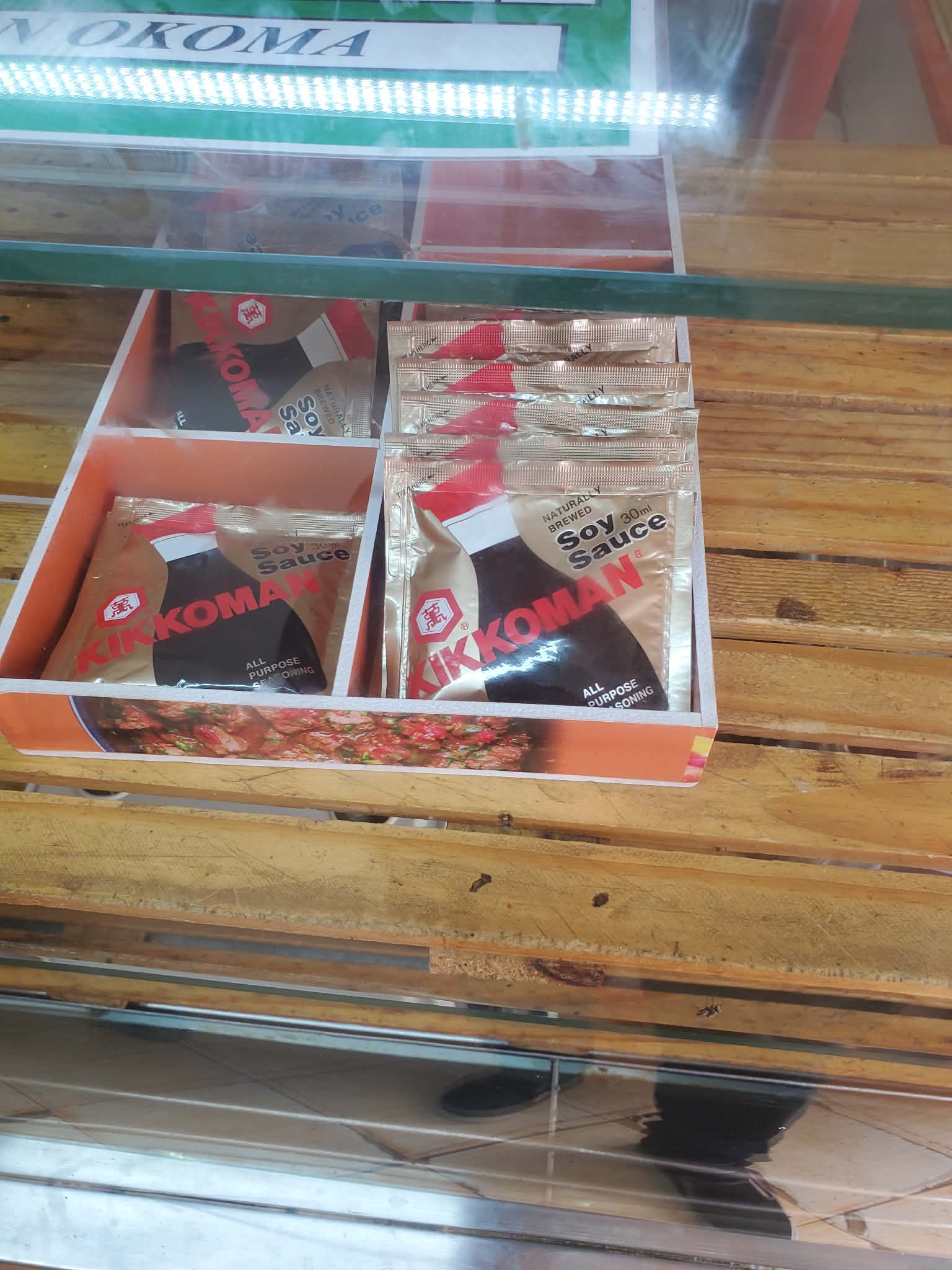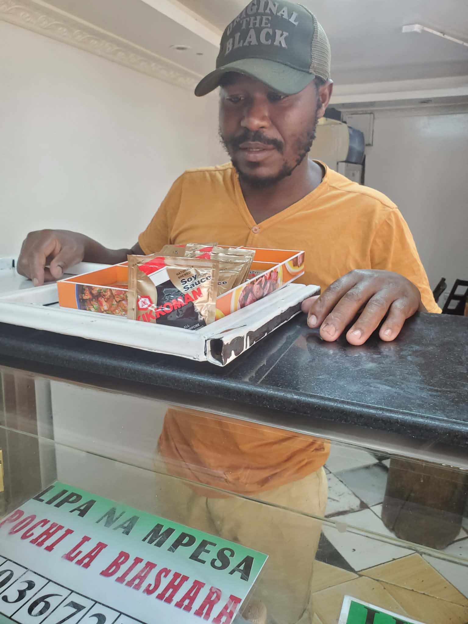キベラに住む人たちは、この店に来てポテトを食べる時に、「もっとキッコーマンソースをかけて!」と追加でソースを頼むことが多いんだ。