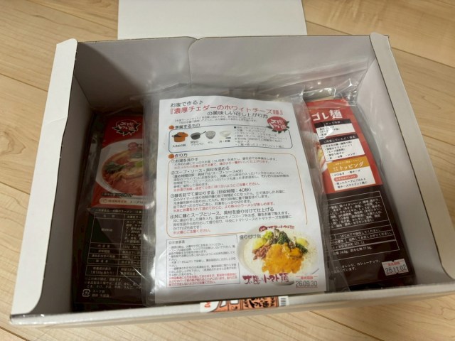 ただ、開封しながら、ふと冷静に考えてみる。店舗で食べると意外に太陽のラーメンが約900円前後、変わり種ラーメンが1150円前後。今回、家で気軽に楽しめるのは嬉しいが、店舗価格と比較すると、超お得というわけではなさそうだ。