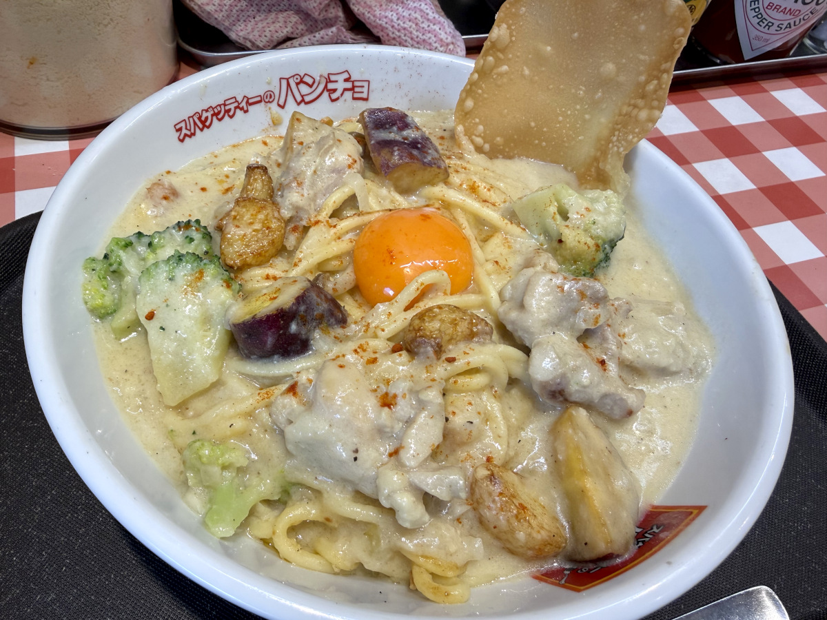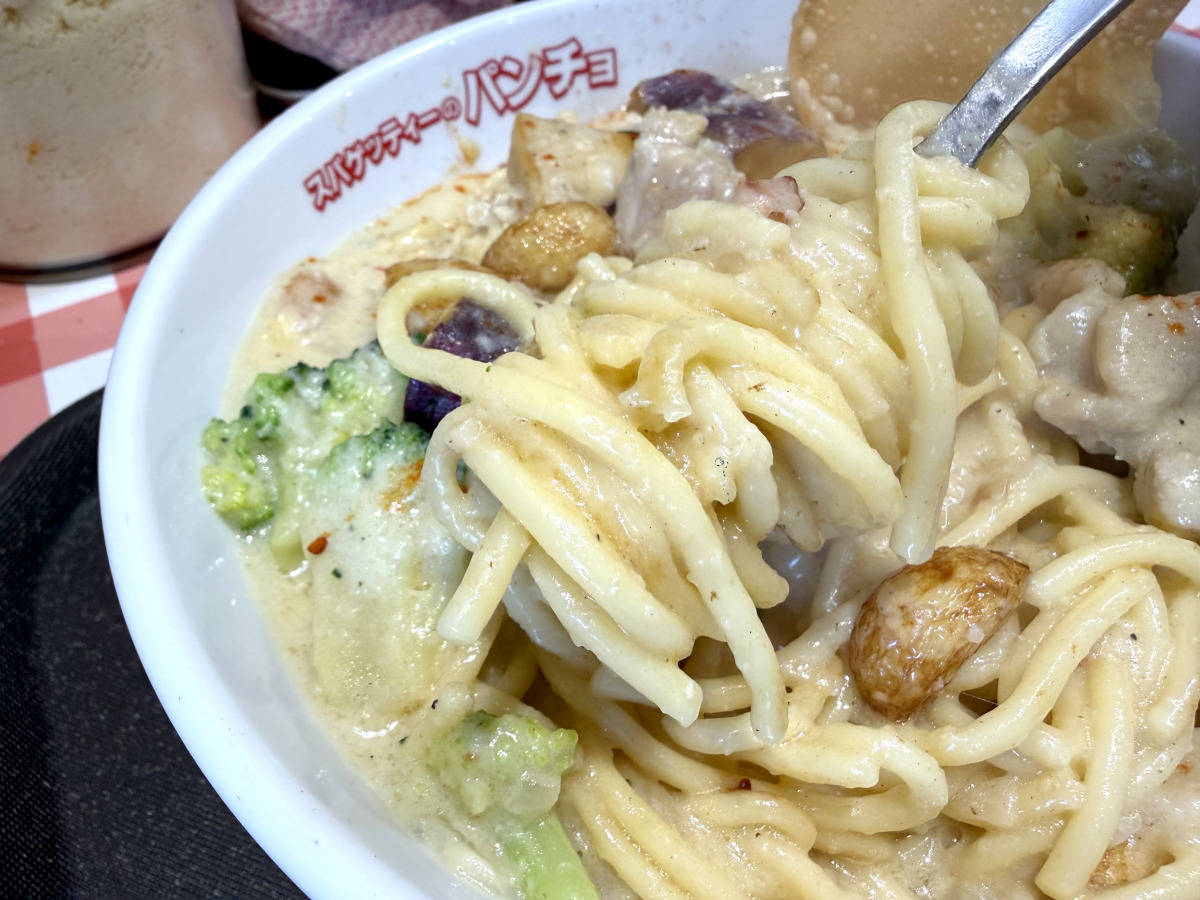 というわけで、最寄りのパンチョに足を運んだところ『シュクメルリ風パスタ』は3つの意味でヤバい代物であった。順に説明しよう。