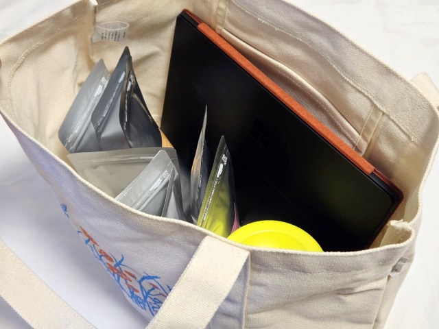 そしてなにかと使い勝手の良い、大きなトートバッグも付いてくる。夏の福袋はペラペラのバッグなんだけど、冬の福袋は生地が丈夫でしっかりしているから良いんだよね。13インチのパソコンとかも余裕で入るぞ。