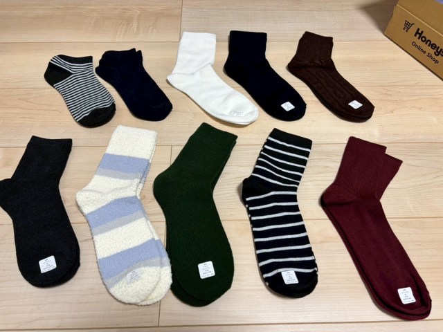 間違いなく10足、ちゃんと入っている。全体を見た印象は、無難。