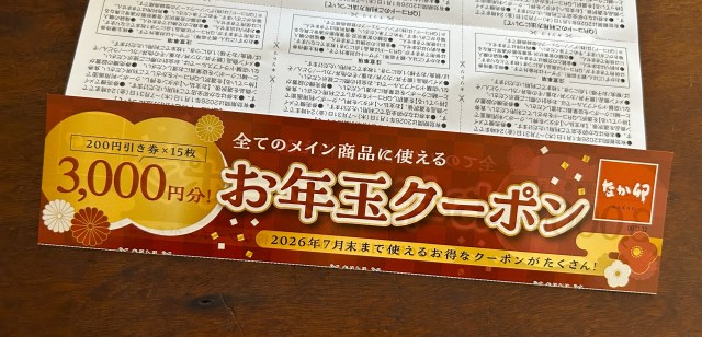 お値段以上のクーポン券を入れてくれることがままあり、恐縮しつつありがたく使わせていただいていたのだが、昨年(2025)から購入金額とクーポン券が同額となっている。今年(2026)はどうだろうかと思いながら『なか卯』に向かったところ……。