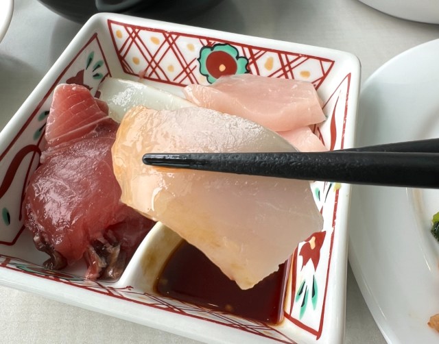 マグロ、白身魚など、新鮮な近海魚の刺身が舟盛りで置いてある。これがランチビュッフェで食べ放題とは……もはや贅沢すぎる。