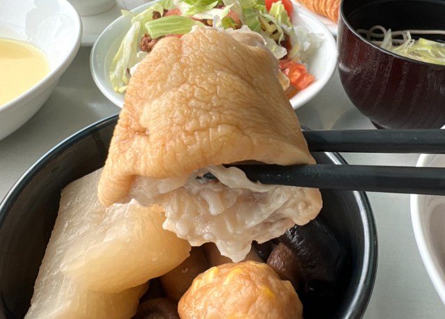 うん、染み染みだ。特に厚揚げがジューシーで、出汁をたっぷり吸い込んでいる。レタスやテビチが入っている「沖縄おでん」とは違い、比較的、内地のおでんで提供される具材が中心ではあるが、これはこれでアリだ。