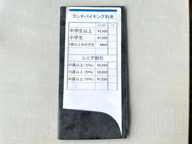 営業時間は11:30〜14:00で、料金は中学生以上2500円(税込)。小学生は1300円、3歳以上の未就学児は800円だ。しかも65歳以上はシニア割引があるという、なんとも良心的な価格設定である。