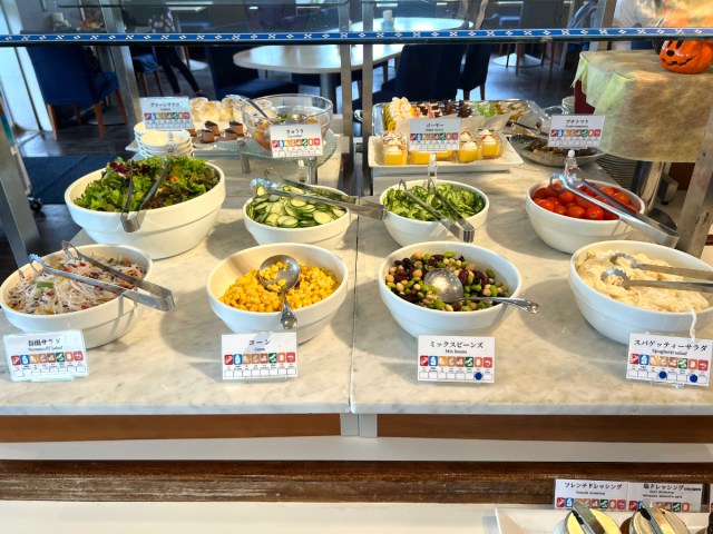 さっそくビュッフェ台を物色してみると……まず目に入ったのがサラダバー。