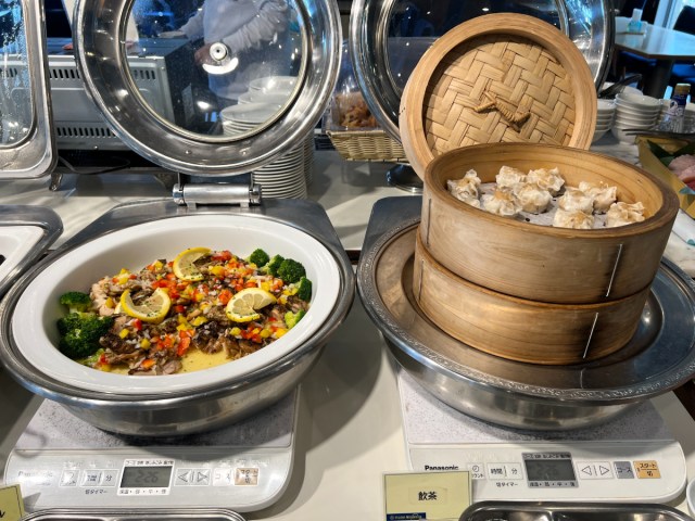 彩り豊かな肉料理に、蒸籠に入った飲茶。見るからにうまそうだ。