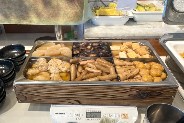 大根、しいたけ、厚揚げ、ウインナー、さつま揚げなど、これぞ日本の冬の味覚、という具材がズラリ。南国でおでんを食べられるとは思わなかった。