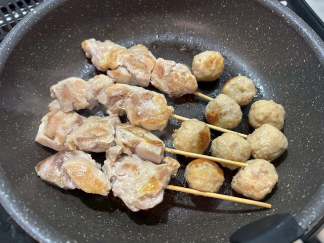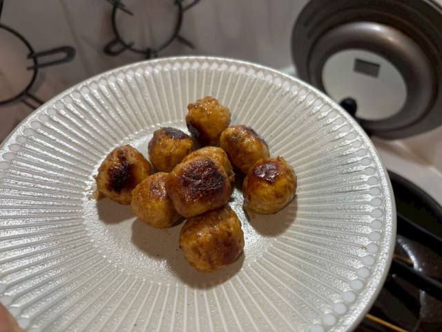 タレもちょうどいい塩梅で美味しい。これがフライパンで焼いただけとは、正直信じられない。翌日は、当たりでもらった「つくねボール」も焼いてみた。