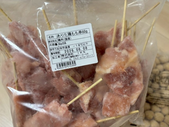 ありたどり もも肉串20本、「八剣伝」の焼鳥タレ1L、パンチサワーシロップ900mlがセットになっている。(+景品のつくねボール)景品分を除いて、通常価格7804円のところ、5940円なので、割とお得そう。