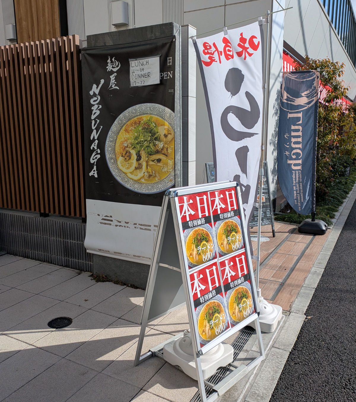 このお店「麺屋NOBUNAGA ‐SHOGUN‐」というらしい。京橋と茅場町にもお店があり、夜は完全予約制でコース料理の提供も行っているそうだ。