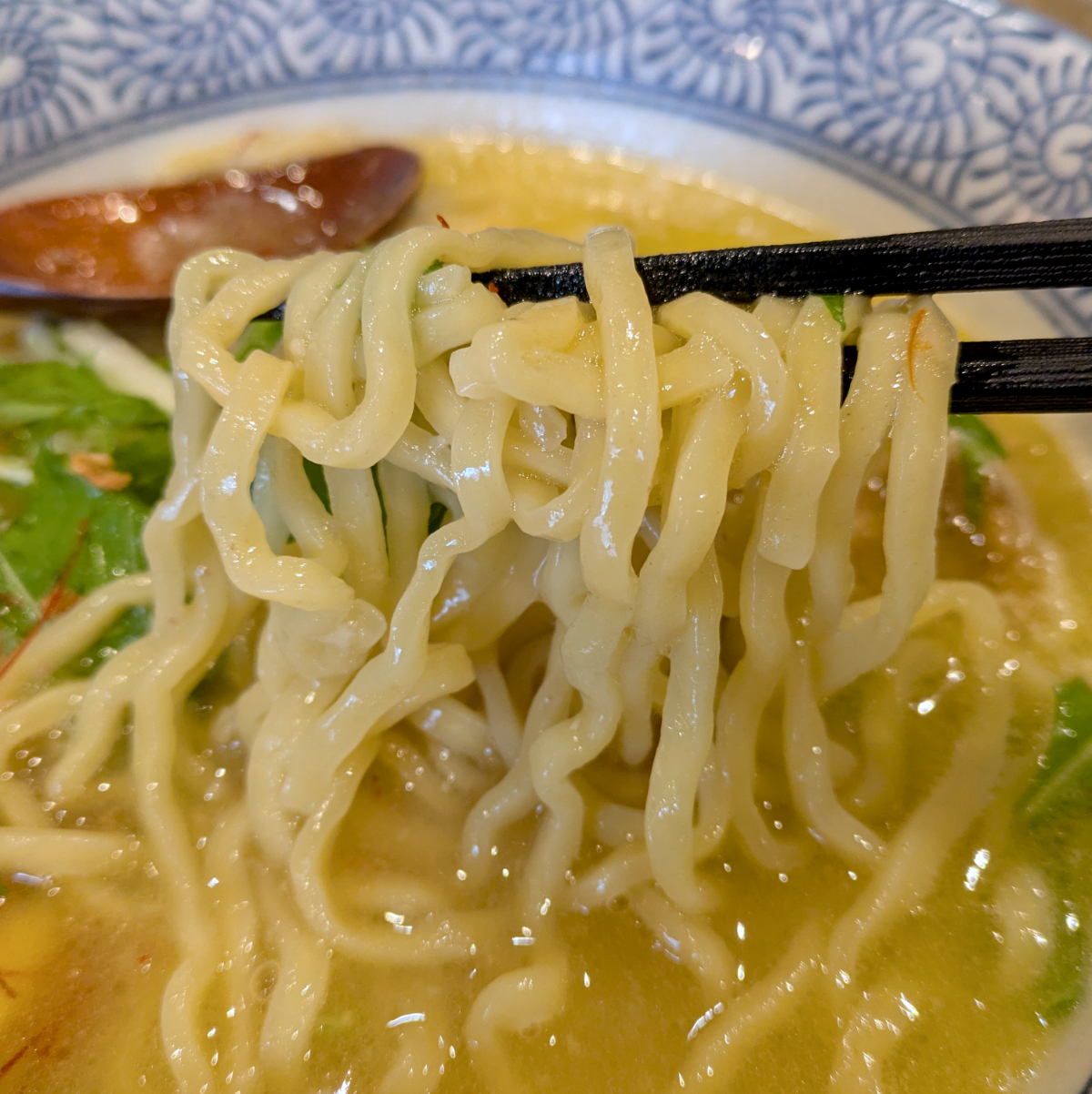 スープは魚介のきいた鶏白湯。旨味がしっかりしているのに、後味はあっさりしていて、ひと口飲むとクセになる美味しさ。独自製法で48時間煮込んでいるのだとか。
