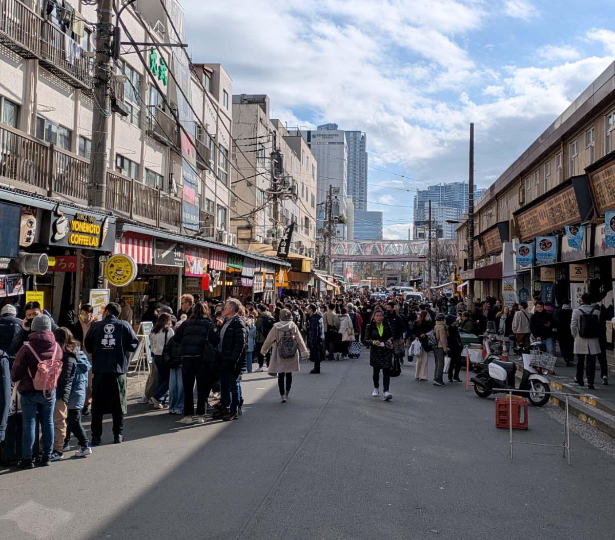 晴海通りを渡って、アーケードの方に進むとますます混雑。