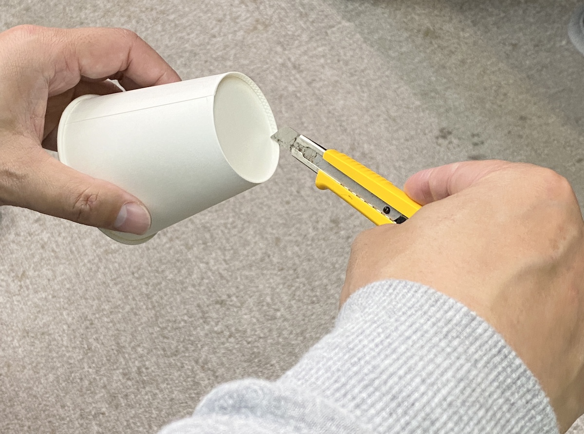 んでもって、やる手順は超がつくほど簡単。まずは紙コップの底を切り抜き〜の