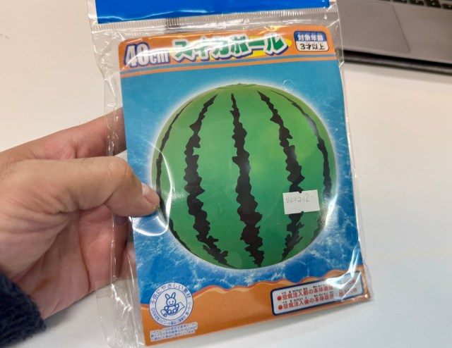 値札を確認すると572円。まったく値下げしていない。ノリで買うにはちょっと高いという絶望的な価格設定。にも関わらず、その佇まいには貫禄があった。どう見ても2025年夏に入荷したスイカボールではない。数年前の夏からずっとここにいるオーラを感じる。