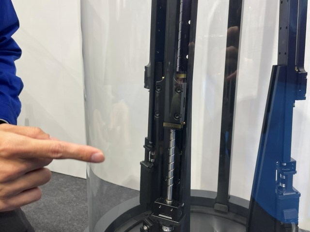 濵口さん「その機構を見やすくしたものが、こちらの展示なんです。この細長い棒状の部分がモノキャリアですね」