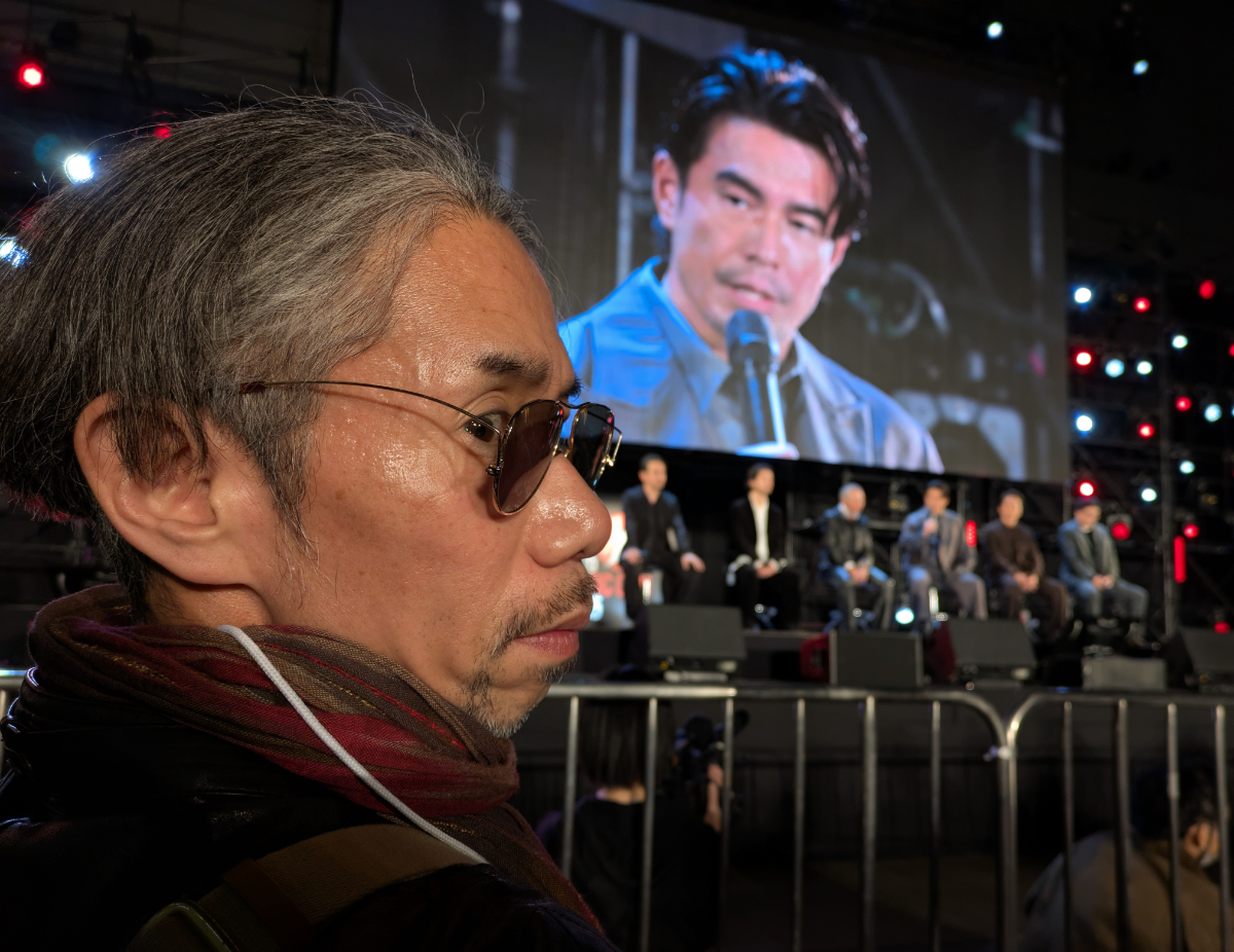 この日ステージに立ったのは、伊藤さんのほか、作品の主要メンバー、青柳翔さん・金子ノブアキさん・柳葉敏郎さん・本宮泰風さん、そして原作者のたーし先生という錚々(そうそう)たる面々。硬派なヤクザ映画の出演者の皆さんだけあって、その迫力はハンパない!