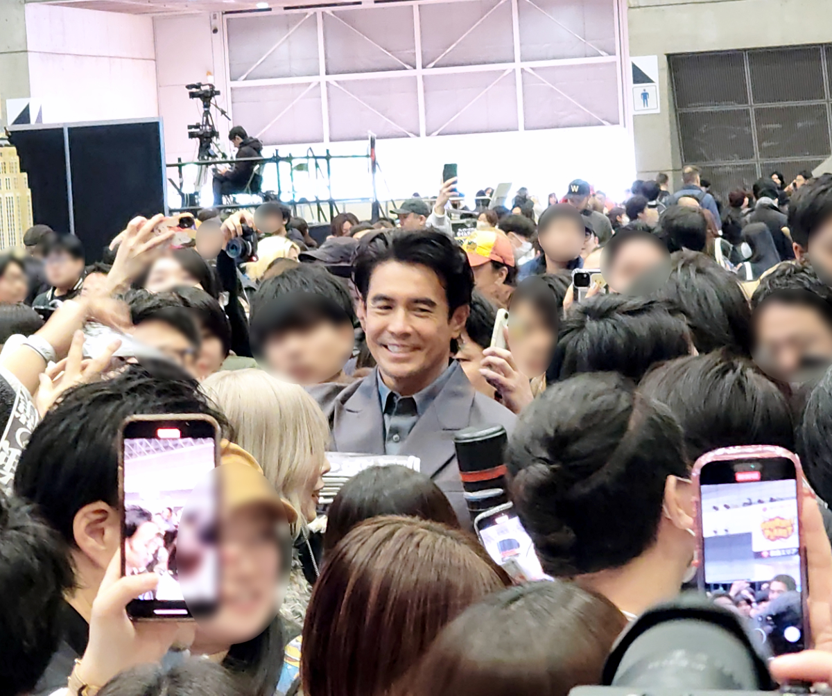 その後ステージを降り、登壇者 + ドンケツ俳優の皆さんがサプライズでホールに姿をあらわし、号外配布を敢行。すると、またたく間に来場者に取り囲まれてしまった。そりゃそうだよ、人気俳優の皆さんを間近で見られるまたとないチャンス!