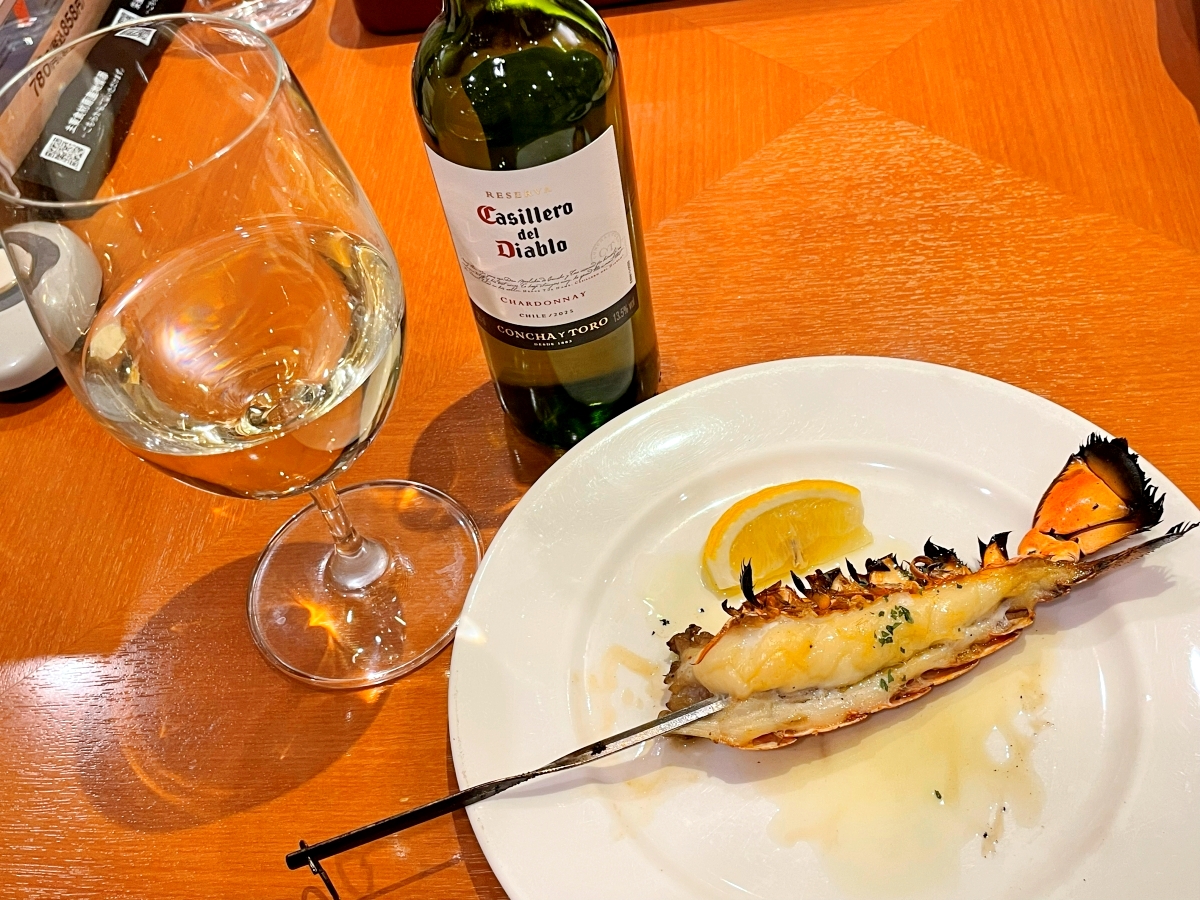 あひるねこは、乾坤一擲のオマール海老をセレクト。真似するには勇気がいる組み合わせだが “Mr.酒” の名に恥じないオーダーと言えよう。
