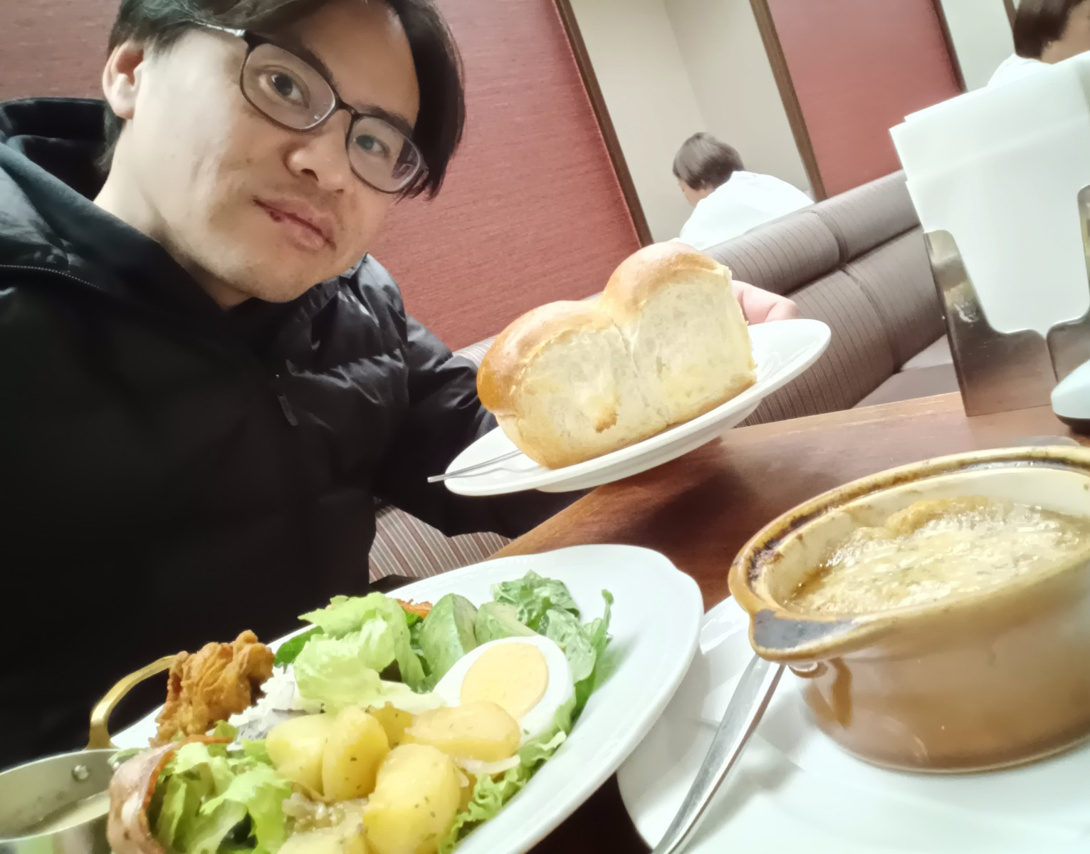 ランチは佐藤パイセンと被ったものの、とんでもない情熱を感じるYoshioのプレゼン。オニオングラタンスープを外してドリンクバーを選んだ選択が吉と出るだろうか?