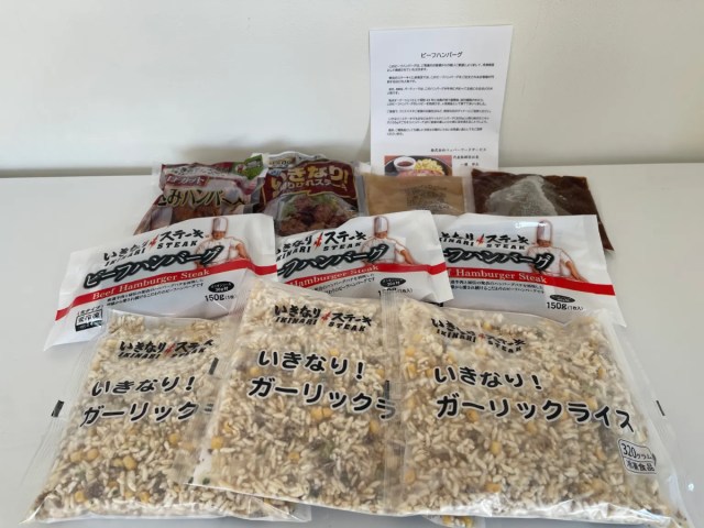 2021年のAセットは税込4990円。「ビーフハンバーグ150g」×3個、「ガーリックライス320g」×3袋、「レンジで乱切りひれステーキ150g」×3個、「いきなり!ガーリックペースト」という内容だった。