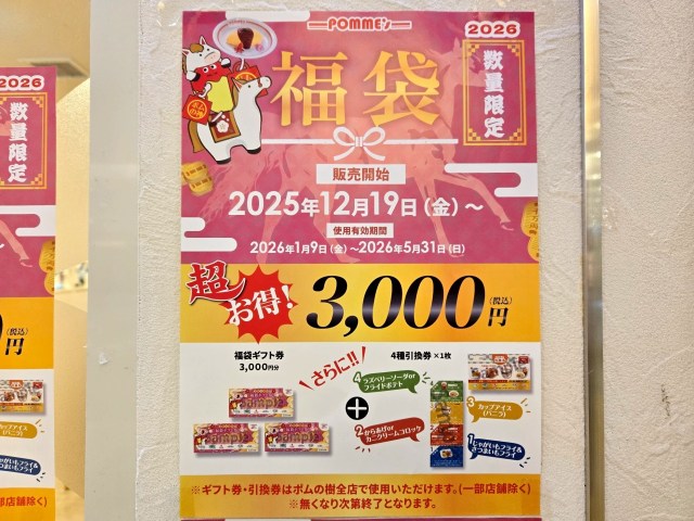 オムライス専門店「ポムの樹」の前を通ったら、福袋の販売を知らせる告知ポスターが目に入った。いや、目に入ったどころではない。だって店前に計10枚も貼られていたのだから……。