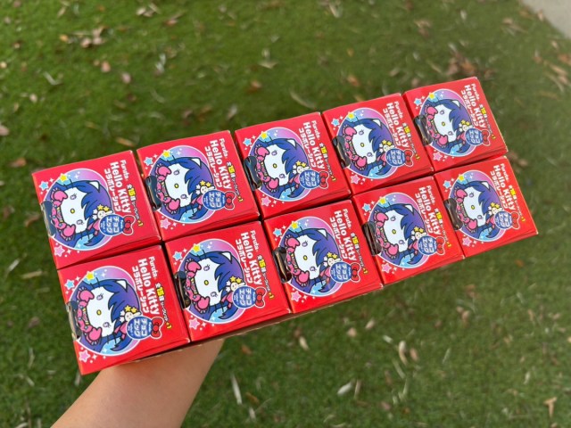 これはもう、まとめ買いするしかない。ということで、1ボックス10個を大人買いしてみた。私の狙いは、カズレーザー×ハローキティである。