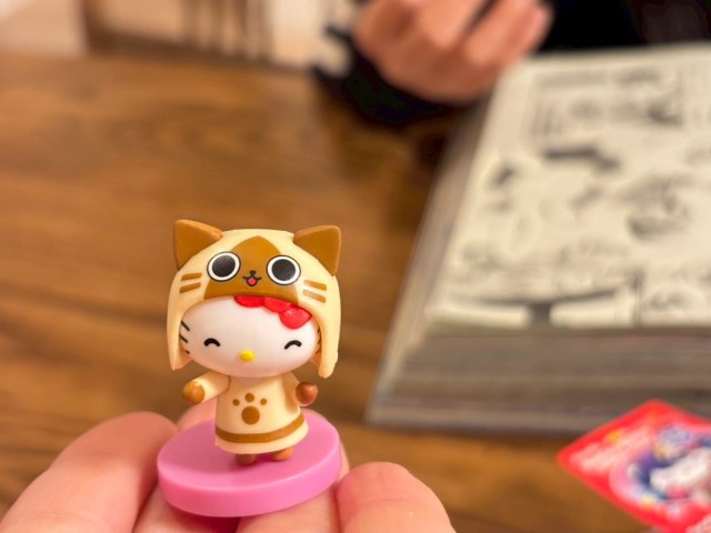 アイルーのかぶりものをしたキティちゃんだ。2004年に初代が発売されたモンハンは、まさに平成を代表するゲーム。