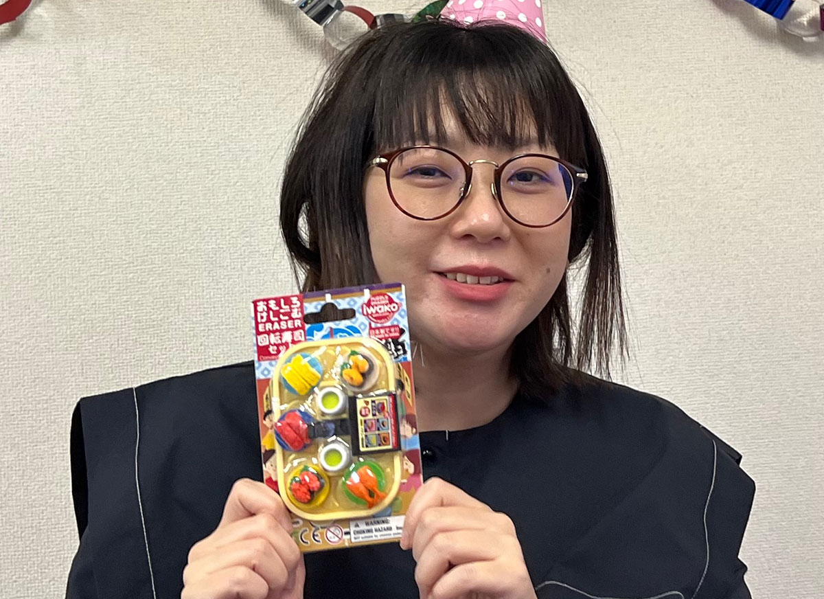 「正直、これ系のイベントで何を買ってたか覚えてないんですよ。ただ、文房具とかを渡していた気がするから、『おもしろけしごむ』を選んでみました」