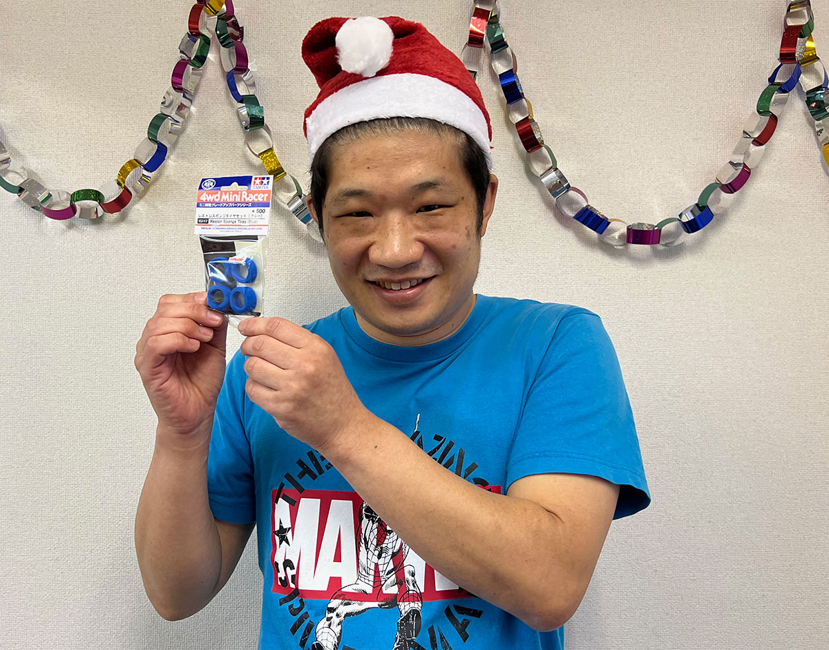 ただ、500円以内では1つをそのまま買えなかったので、スポンジタイヤだけに。実際、こういうパーツだけのプレゼントも喜ばれたものだ。同じくカスタムツールのニッパーと迷ったけど、やっぱりスポンジタイヤは鉄板でしょ!
